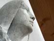 Die Abbildungen zeigen Details der Statue vor und nach den Restaurationsarbeiten.